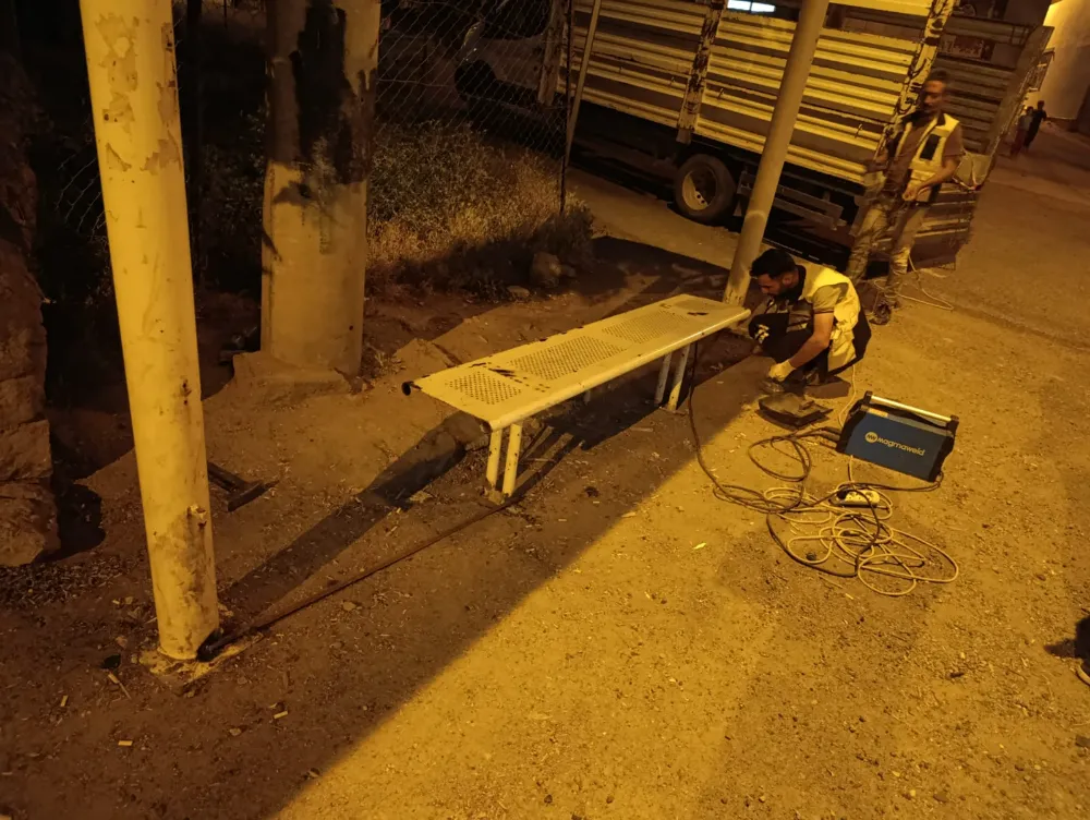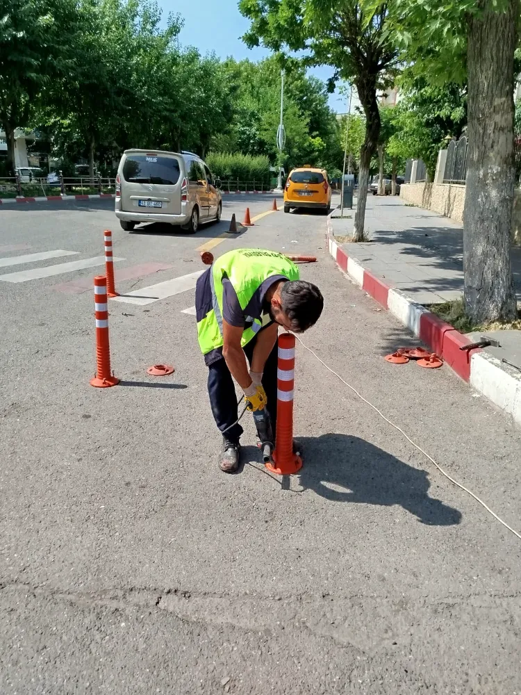 Bu kapsamda, otobüs duraklarında bakım ve yenileme çalışmaları yapılırken, kırık ve deforme olmuş delinatör dubalar da onarılarak yeniden kullanıma kazandırılıyor.