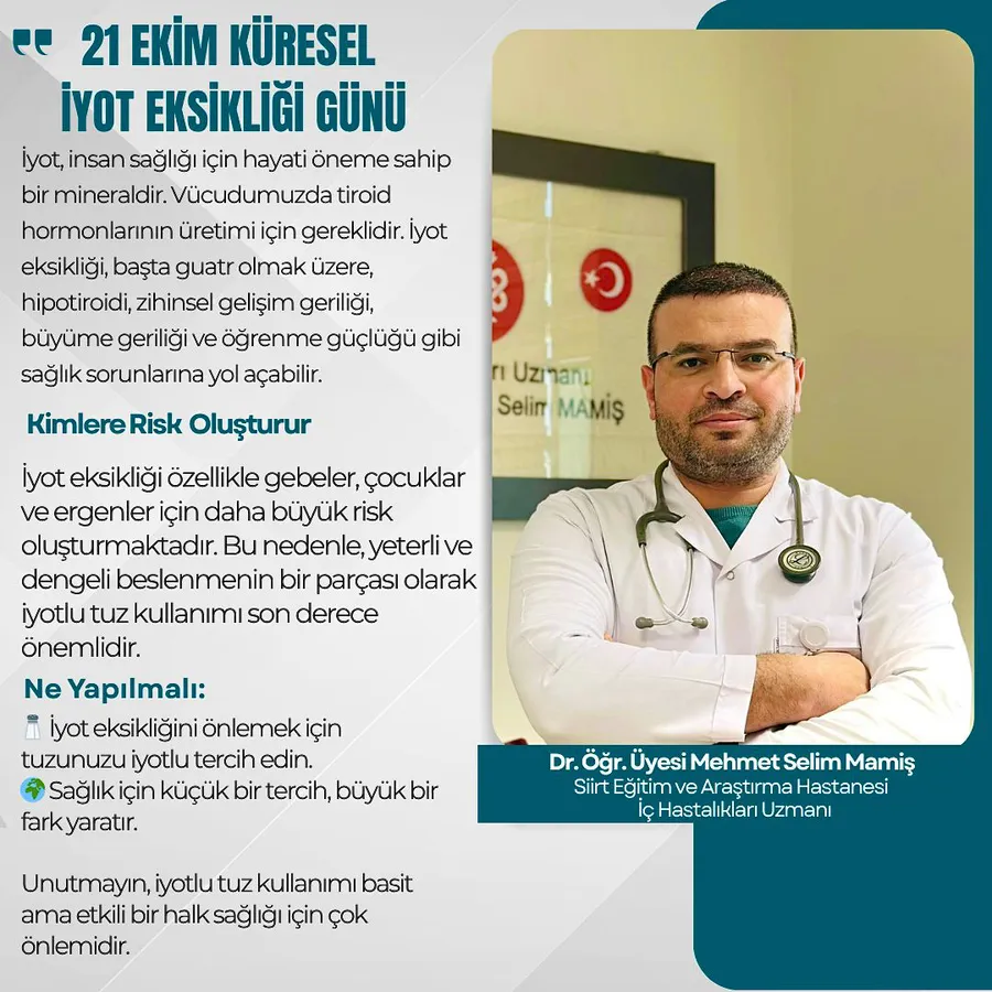 Siirt Eğitim ve Araştırma Hastanesi Dahiliye Dr. Mamiş, 21 Ekim Küresel İyot Eksikliği gününde Açıklama
