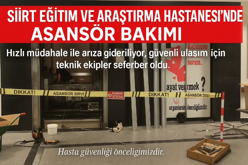 Siirt Eğitim ve Araştırma Hastanesi’nde, hasta ve hasta yakınlarının can güvenliğini sağlamak ve olası risklerin önüne geçmek amacıyla asansörlerde kapsamlı bakım ve onarım çalışmalarına başlandı.
