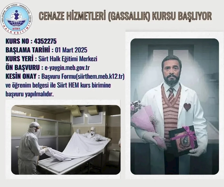 Siirt Halk Eğitim Merkezi, mesleki ve dini eğitim alanında önemli bir adım atarak Gassallık (Cenaze Yıkama ve Kefenleme) kursu açıyor. 1 Mart 2025 tarihinde başlayacak olan kurs, cenaze hizmetleri konusunda eğitim almak ve bu alanda görev yapmak isteyen vatandaşlara yönelik düzenleniyor.