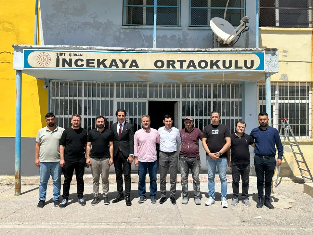 Siirt İl Milli Eğitim Müdürü İlhan Saz, 2025–2026 eğitim öğretim yılı hazırlıkları kapsamında Şirvan ilçesi İncekaya Köyü’nde bulunan İncekaya Ortaokulu’nu ziyaret ederek sürdürülen yapım ve onarım çalışmalarını yerinde inceledi.
