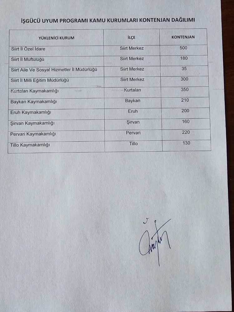 Kurtalan Kaymakamligi Kurtalan 350 Kontenjan