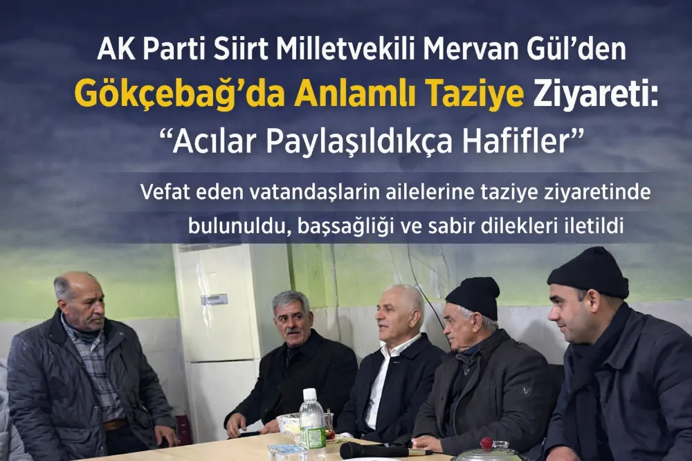 AK Parti Siirt Milletvekili Mervan Gül, Gökçebağ beldesinde vefat eden vatandaşların ailelerine yönelik taziye ziyaretinde bulundu. Ziyarette, Ferzent Çiçek, Hikmet Ekin, Murat Gül ve teşkilat mensupları da yer aldı.