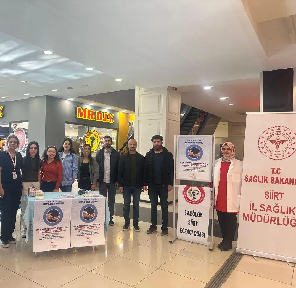 Siirt İl Sağlık Müdürlüğü ile Siirt Eczacılar Odası Başkanlığı iş birliğiyle, 14 Kasım Dünya Diyabet Günü kapsamında vatandaşlarda farkındalık oluşturmak amacıyla Siirt Park AVM’de kapsamlı bir diyabet bilgilendirme standı kuruldu.