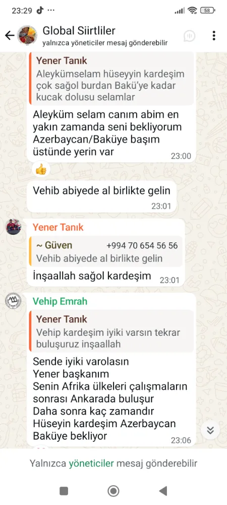 Yapılan görüşmelerin ardından Azerbaycan’daki Siirtliler’den gelen samimi mesajlar ise gönülleri bir kez daha ısıttı. Özellikle Bakü’deki hemşehrimiz Hüseyin Güven, Yener Tanık ve Vehip Emrah’ı birlikte Azerbaycan’a davet etti.