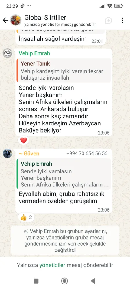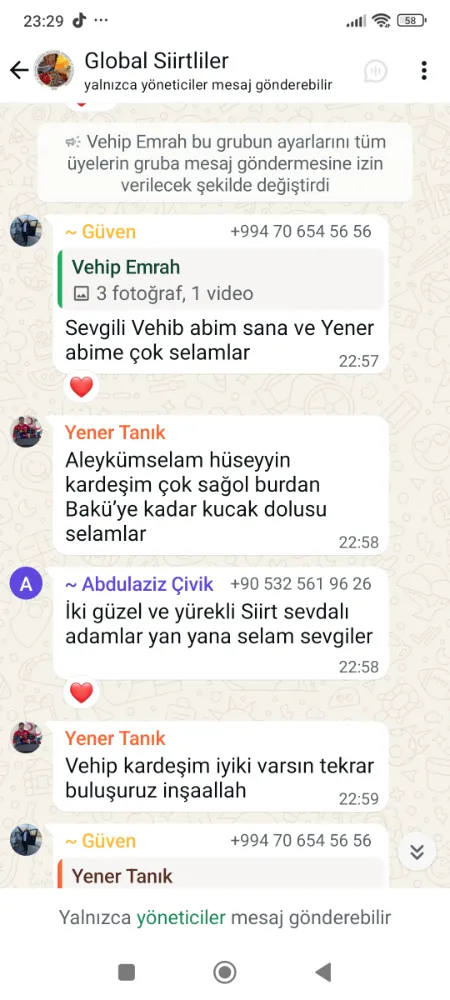 Gerçekleşen ziyaretler ve güçlü birliktelik, “Global Siirtliler” adlı WhatsApp grubunda da yankı buldu. Grup üyelerinden gelen mesajlardan bazıları şöyleydi: