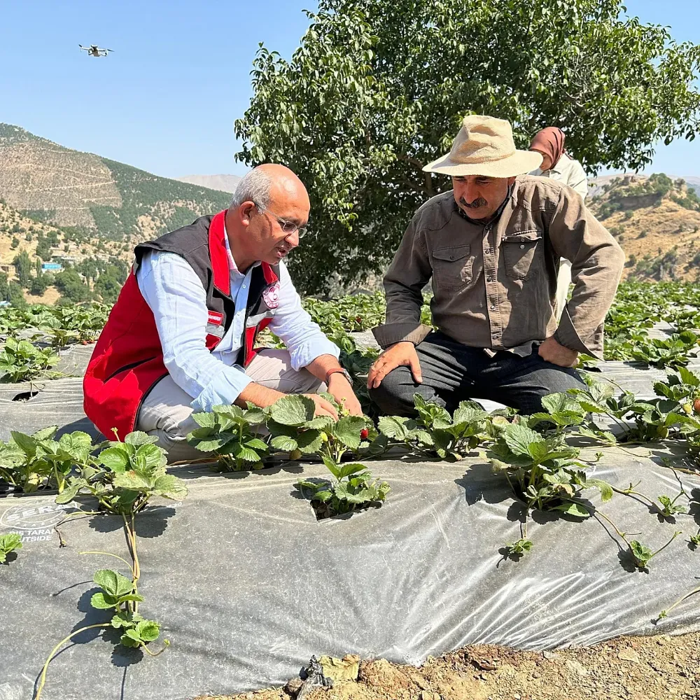 Siirt Tarım ve Orman İl Müdürü Mustafa Şanverdi, Şirvan ilçesine bağlı Kesmetaş Köyü’nde yürütülen çilek demonstrasyon çalışmalarını yerinde inceleyerek proje hakkında bilgi aldı.