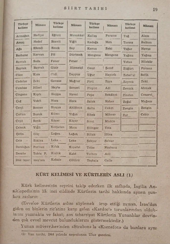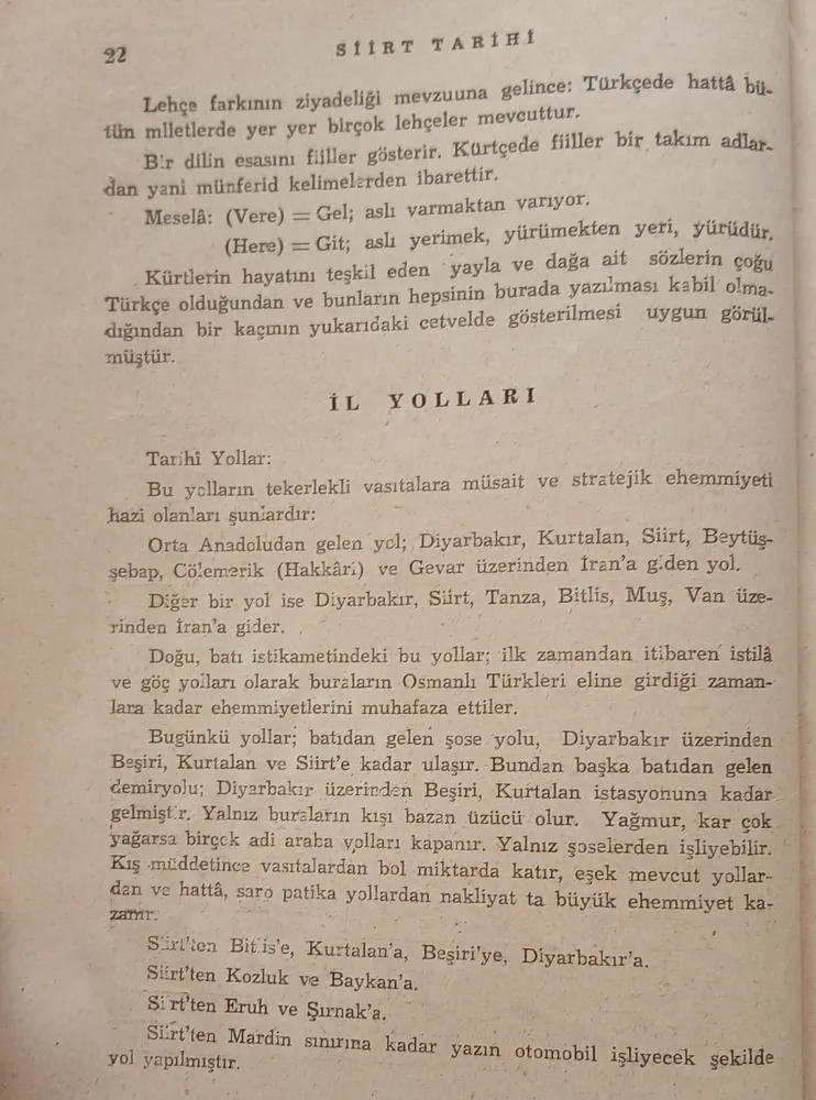 1946 yılında İstanbul Çeltut Matbaası’nda basılan ve Siirt Müftüsü Ömer Atalay tarafından yazılan “Siirt Tarihi” adlı eser, dönemin devlet ideolojisini yansıtan, dil ve kimlik konularına dair dikkat çeken görüşler içermektedir.