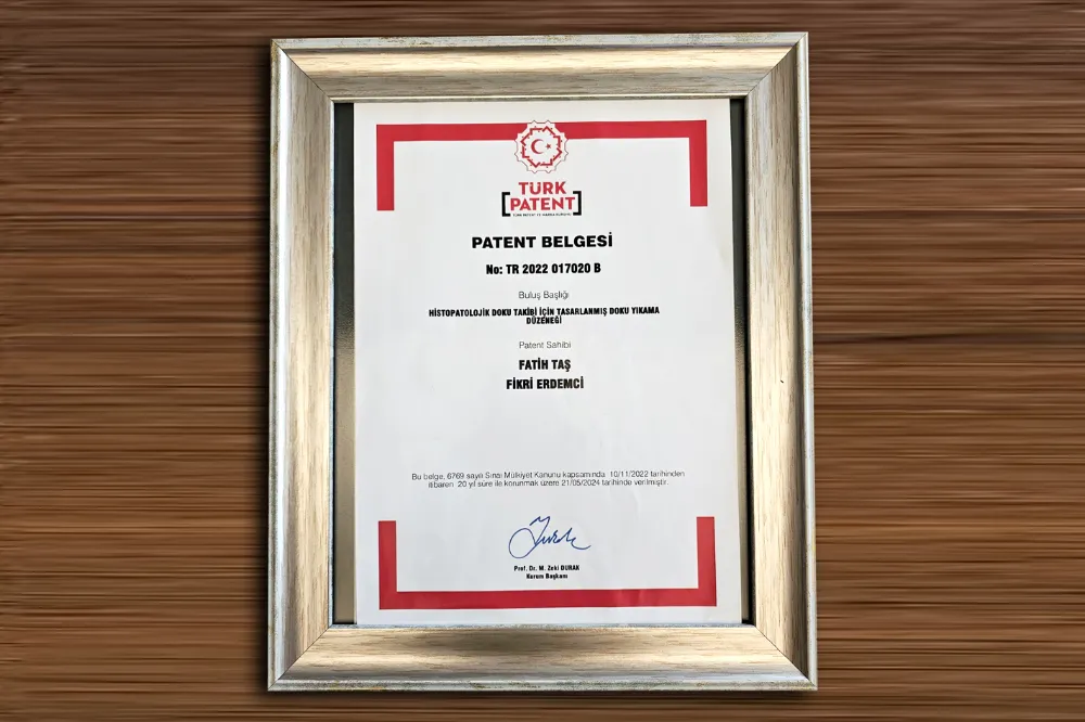 Siirt Üniversitesi Tıp Fakültesi Dekan Yardımcısı Doç. Dr. Fatih Taş, Siirt İl Sağlık Müdürlüğü’nde çalışan PhD. Fikri Erdemci ile birlikte yürüttüğü “Histopatolojik Doku Takibi İçin Tasarlanmış Doku Yıkama Düzeneği” isimli buluşu “Ulusal Patent” olarak tescil edildi. Doç. Dr. Fatih Taş konuyla ilgili olarak şu açıklamalarda bulundu: “Histopatolojik Doku Takibi İçin Tasarlanmış Doku Yıkama Düzeneği” isimli buluşumuz genel olarak; histopatolojik doku takibi amacıyla çeşme suyu altında bırakılan doku kesitlerinin neden olduğu su zayiatını ortadan kaldıran bir doku yıkama düzeneği ile ilgilidir. Buluşun ana bölümünde yer alan doku kesitlerinin üzerinden geçen temiz su, daha sonra buluşun depo bölümündeki filtre sisteminden geçerek, kirli suyun arındırılması sağlanmaktadır. Böylece tekrar kullanıma hazır hale gelen temizlenmiş su, buluşun ana bölümü ile depo bölümünü bağlayan borular aracılığıyla tekrardan kullanılabilmektedir. Buluşta bu devir daim sisteminin işlemesi için gerekli olan elektrikli pompa (şebeke elektriği veya batarya ile çalışan) sistemi bulunmaktadır. Buluş sayesinde doku kesitleri uzun saatler çeşme suyuna bırakılmayacağı için su israfını önleyecektir. Buluşun bu yönüyle “Sıfır Atık” ilkesine uygun bir tasarıma sahip olduğunu söyleyebiliriz.