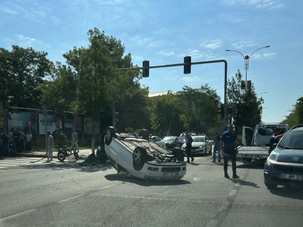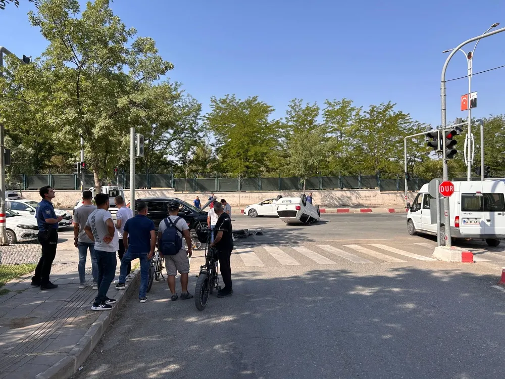 İki otomobil çarpıştı, biri takla attı – Şans eseri yaralanan olmadı