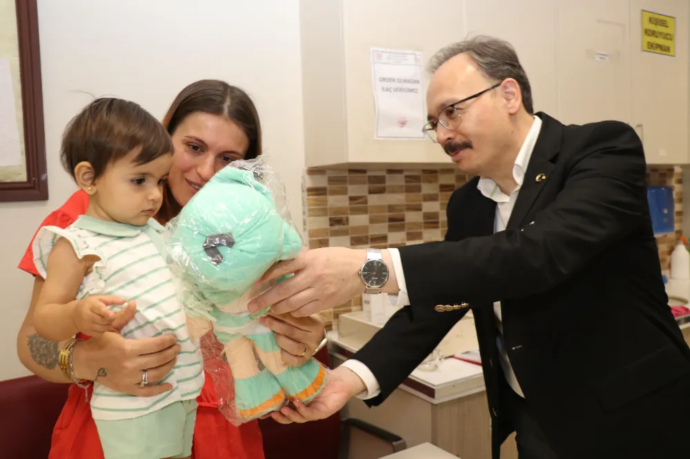 Çocuklarla yakından ilgilenen Vali Kızılkaya, onlara bayram harçlığı takdim ederek bayram sevincini paylaştı.