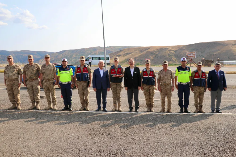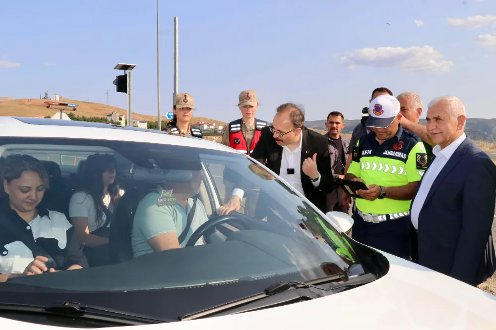 Trafik Uygulamasında Sürücülere Bayramda Güvenli Sürüş Uyarısı Yol kontrol noktasında görev yapan jandarma personeliyle birlikte uygulamaya katılan Vali Kızılkaya, durdurulan araçlardaki sürücülerle bayramlaştı.