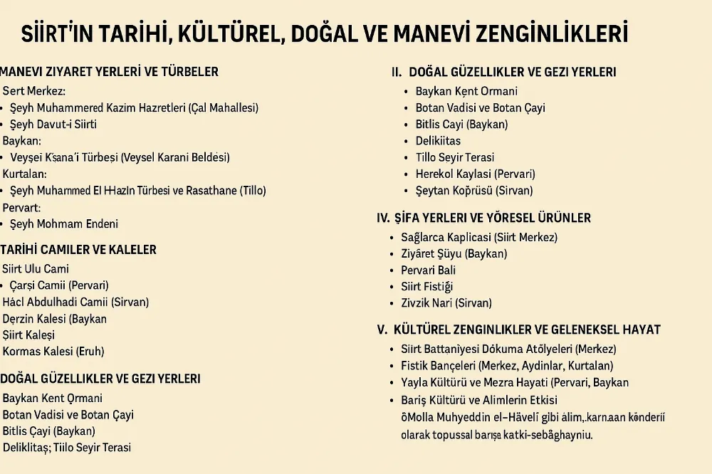 SİİRT VE İLÇELERİNİN TARİHİ, KÜLTÜREL, DOĞAL VE MANEVİ ZENGİNLİKLERİ