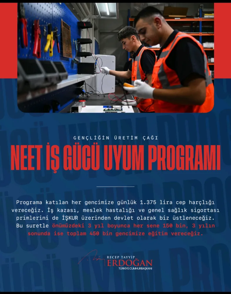 Türkiye’nin geleceğinde önemli roller üstlenecek her bir gencimizi ihtiyaç duyulan alanlara kazandırmakta kararlı olan devlet, GÜÇ Programı kapsamındaki üçüncü destek modülü olan NEET İş Gücü Uyum Programı’nı başlatıyor.