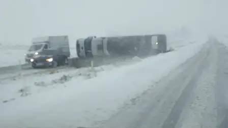 Edinilen bilgilere göre, seyir halindeki bir kamyon, yolun kayganlaşması sonucu sürücüsünün direksiyon hâkimiyetini kaybetmesiyle devrildi.