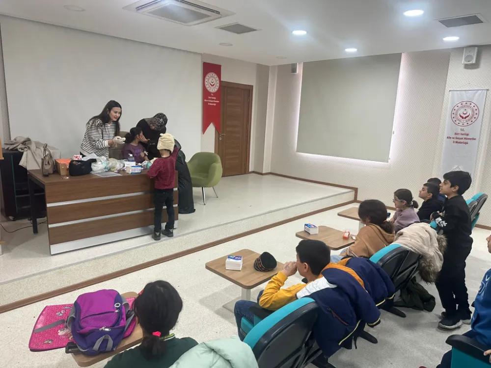 Siirt’e Çocuk Evleri Koordinasyon merkezinde kalan çocuklara kan grubu tayini yapıldı. Aile ve Sosyal Hizmetler Siirt İl Müdürlüğü konu ile ilgili açıklamalarında; Çocuk Evleri Koordinasyon merkezinde kalan çocuklarımıza, İl Sağlık Müdürlüğünden gelen hemşireler tarafından kan grubu tayini yapılıp ikramlarda bulunuldu. Ayrıca, sağlık personelleri tarafından çocuklarımıza yönelik "Hijyen ve Beslenme" konularında eğitimler verilmiştir. Sözlerine yer verildi.