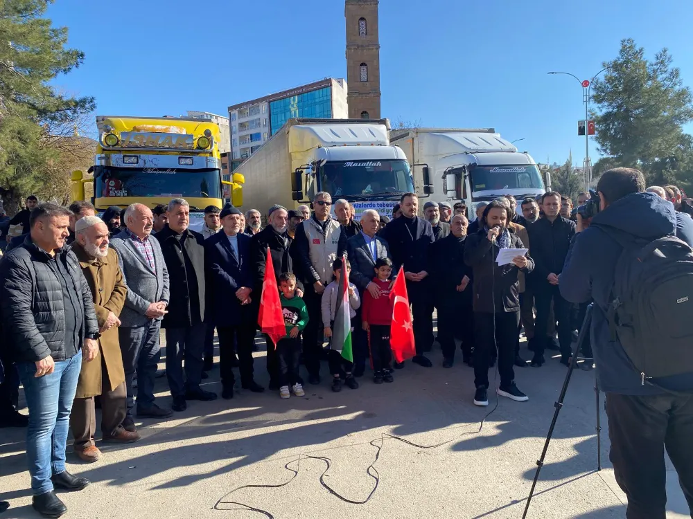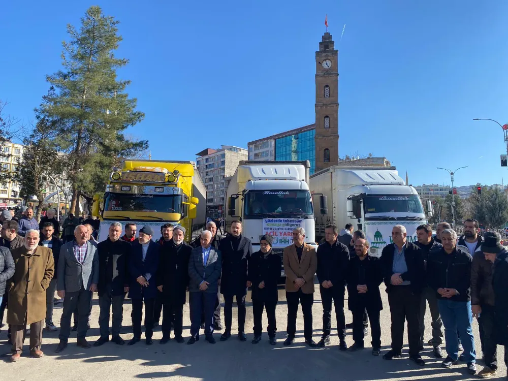 Siirt’e düzenlenen törenle 3 yardım tırı daha dualar eşliğinde Suriye’ye uğurlandı