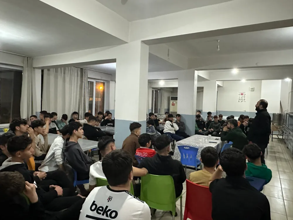Siirt İl Milli Eğitim Müdürlüğü İftarda Konuşalım programı kapsamında Öğrencileri buluşturdu. Milli Eğitim Bakanlığı tarafından Türkiye Yüzyılı Maarif Modeli çerçevesinde Erdem, Değer, Eylem anlayışı ile zengin kültürel mirasımızın önemli bir parçası olan milli ve manevi değerlerimizin yeni nesillere aktarılması amacıyla Siirt İl Milli Eğitim müdürlüğü bünyesinde İftarda Konuşalım etkinlikleri kapsamında öğrenciler Siirt Üniversitesi Eğitim Fakültesi Öğretim Üyesi Doç.Dr. Yusuf Yıldırım ve Siirt Üniversitesi Eğitim Fakültesi Dekan yardımcısı Dr. Tayfun AKIN ile bir araya geldi. Siirt İl Milli Eğitim Müdürü Salih Sadoğlu, Ramazan aynının manevi atmosferinde gerçekleştirilen söyleşide milli ve manevi değerlerimiz başlığında gençlerle samimi bir sohbet ortamı oluşturan değerli misafirimize teşekkür ederiz. Sözlerine yer verdi.