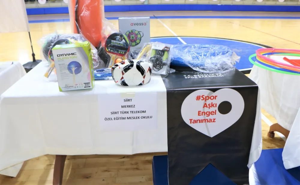 "Spor Aşkı Engel Tanımaz" projesi çerçevesinde Siirt’e ulaşan spor malzemeleri, yapılan törenle özel eğitim veren okullara dağıtıldı.Cumhurbaşkanlığı, Gençlik ve Spor Bakanlığı ile Milli Eğitim Bakanlığının ortak projesi "Spor Aşkı Engel Tanımaz" çerçevesinde özel eğitim okullarına, farklı engel gruplarının kullanımına sunmak üzere üretilmiş spor malzemeleri dağıtım töreni düzenlendi.Türkiye geneli 7 farklı bölge ve 81 ilimizdeki özel eğitim okuluna spor malzemelerini ulaştırmak üzere ‘’Spor Aşkı Engel Tanımaz’’ projesi kapsamında yola çıkan Spor Tırı Siirt Gençlik ve Spor İl Müdürlüğüne ulaştı. Özel bireylerin yararlanabilmesi amacıyla ilimize gönderilen malzemeler Yeni Spor Salonu’nda düzenlenen törenle özel eğitim veren okullara dağıtıldı. Düzenlenen malzeme dağıtım törenine Gençlik ve Spor İl Müdürü Vekili M. Tufan Olğaç, İl Milli Eğitim Müdür Yardımcısı M. Orhan Danış, Gençlik ve Spor Şube Müdürü Levent Obuz, Okul Müdürleri, Kurum Personelleri, Sporcular, antrenörler, engelli sporcular ile aileleri katıldı. Saygı duruşu ve İstiklal Marşı’nın okunmasının ardından açıklama yapan Siirt Gençlik ve Spor İl Müdürü Vekili M. Tufan Olğaç, ‘’ 81 ilde başlayan “Spor Aşkı Engel Tanımaz“ sloganı ile Gençlik ve Spor Bakanlığımız tarafından gönderilen malzemeleri, özel bireylere dağıtmanın mutluluğu içersindeyiz, proje sayesinde dağıttığımız spor malzemesinin İlimizde bulunan özel bireylerin hayata daha sıkı bağlanmalarını, kişisel gelişimlerine katkı sunmaları ve Paralimpik Spor branşlarında bir kıvılcım olmasını umut ediyoruz. ‘’ dedi. Cumhurbaşkanımız Sayın Recep Tayyip Erdoğan'ın himayelerinde, Gençlik ve Spor Bakanlığı ile Milli Eğitim Bakanlığı işbirliğiyle özel gereksinimli sporcularımız için gönderilen spor malzemelerini Merkez ve İlçelerimizde bulunan 6 Özel Eğitim Okulumuza teslim edildi. Toplu çekilen fotoğrafla tören sona erdi.