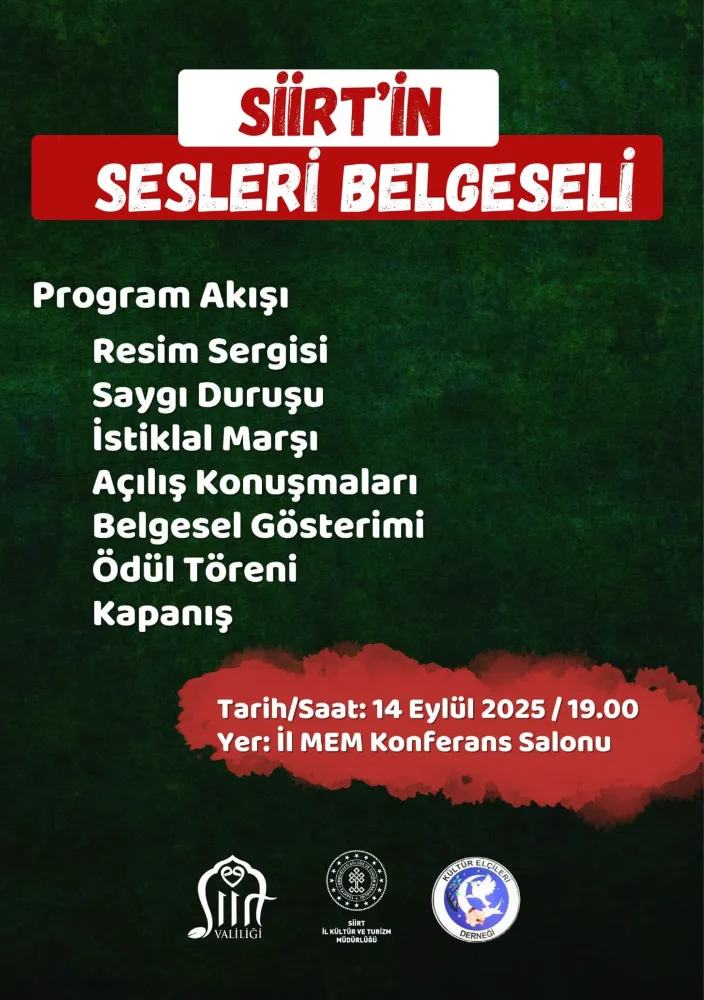 Siirt, kültürel zenginliğini ve tarihî mirasını yansıtan anlamlı bir etkinliğe daha ev sahipliği yaptı. “Siirt’in Sesleri Belgeseli”nin lansmanı, geniş katılım ve yoğun ilgiyle İl Milli Eğitim Müdürlüğü Konferans Salonu’nda düzenlendi.