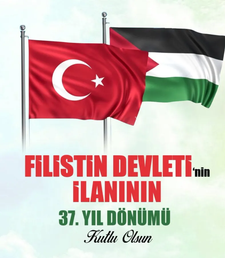“Dost ve kardeş Filistin Devleti’nin kuruluşunun 37. yıldönümünü tebrik ediyor, katil ve terörist İsrail devletini Gazze’de kardeşlerimize yaptıkları katliam ve zulümden dolayı lanetliyorum. Filistin halkının haklı davasının her daim savunucusu olacağız inşallah.”