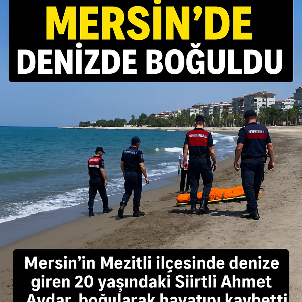 Mersin'in Mezitli ilçesinde denize giren 20 yaşındaki Siirtli Ahmet Aydar, boğularak hayatını kaybetti. Soli sahilinde yaşanan olayda, Aydar'ın dalgalı denizde gözden kaybolmasının ardından sahil güvenlik ve arama kurtarma ekipleri sevk edildi.
