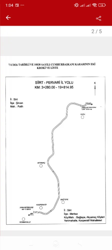 SİİRT–PERVARİ YOLU İÇİN KRİTİK KARAR: CUMHURBAŞKANI ONAYIYLA KAMULAŞTIRMA SÜRECİ BAŞLADI