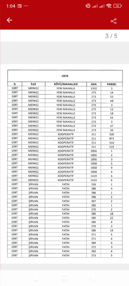 Cumhurbaşkanı Kararı ekinde yayımlanan detaylı parsel listelerinde;
