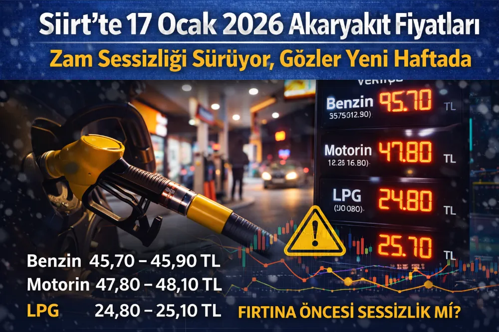 Siirt’te 17 Ocak 2026 günü akaryakıt fiyatları sabit seyrediyor. Ancak bu sakinlik, yeni haftada yaşanabilecek gelişmeler öncesi fırtına öncesi sessizlik olarak değerlendiriliyor. Araç sahiplerinin güncel fiyatları takip etmesi önem taşıyor.