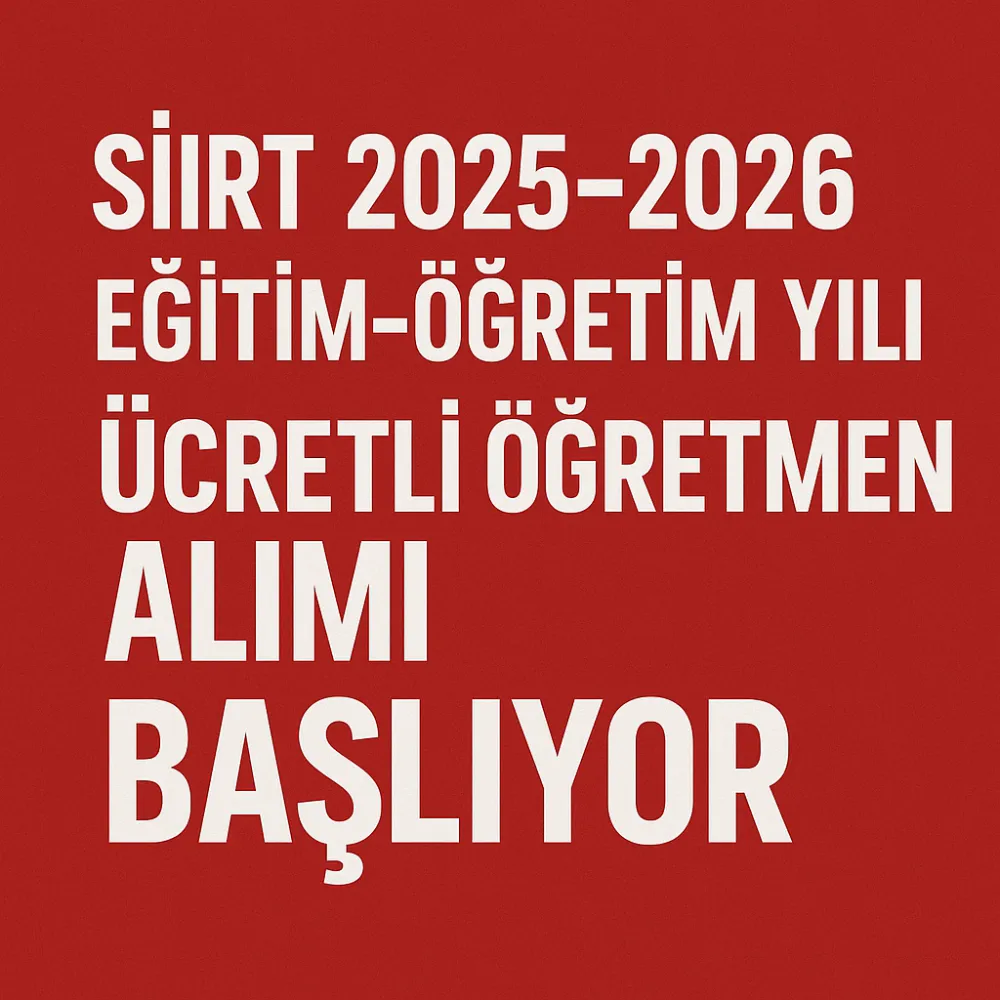 Siirt’te yeni eğitim-öğretim yılı için ücretli öğretmen görevlendirmeleri yapılacak. Başvurular 20-31 Ağustos 2025 tarihleri arasında yalnızca e-Devlet üzerinden alınacak.