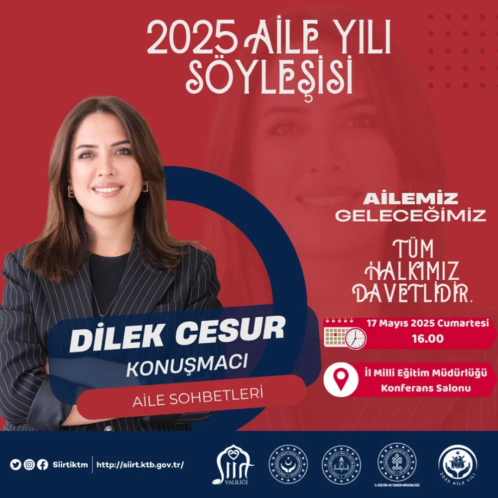 Siirt Valiliği, 2025 Aile Yılı kapsamında aile değerlerini ve toplumun temel taşı olan aile kurumunun önemini vurgulamak amacıyla bir söyleşi düzenliyor.