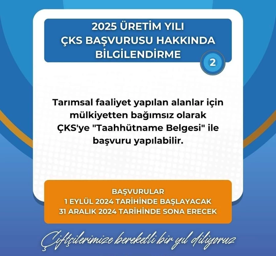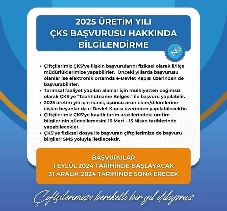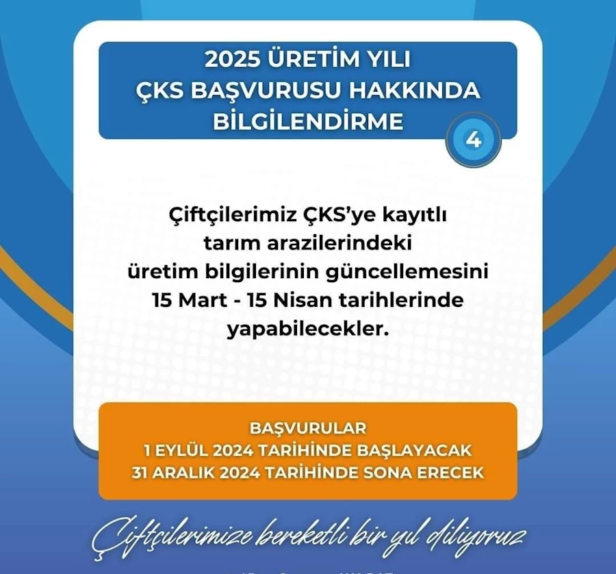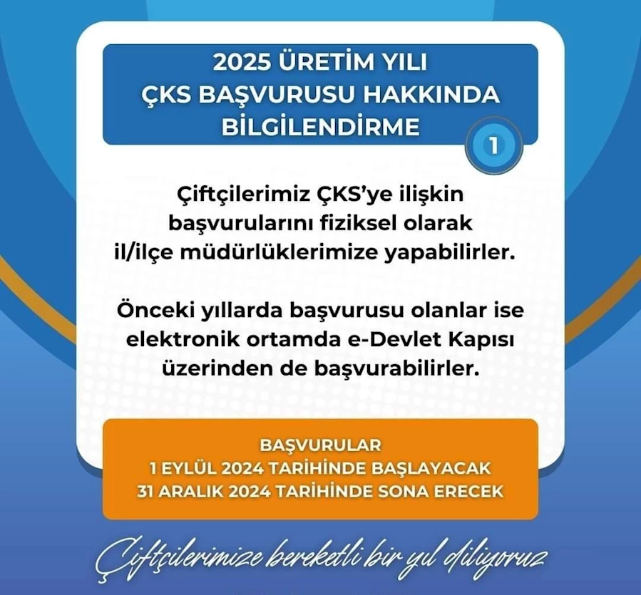 Başvuru yapmak isteyen üreticiler, il ve ilçe tarım müdürlüklerine giderek kayıt güncelleme işlemlerini gerçekleştirebilecek. Daha önce başvurusu olan çiftçiler ise işlemlerini e-Devlet üzerinden kolayca tamamlayabilirler. Başvurular 31 Aralık 2024 tarihinde sona erecek.
