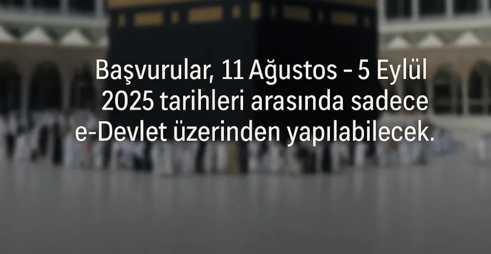 Diyanet İşleri Başkanlığı, 2026 yılı hac ön kayıt ve kayıt yenileme işlemlerinin 11 Ağustos 2025 tarihinde başlayacağını duyurdu. Başvurular, 11 Ağustos – 5 Eylül 2025 tarihleri arasında yalnızca e-Devlet üzerinden dijital ortamda yapılabilecek.
