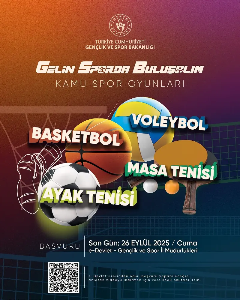Basketbol, voleybol, masa tenisi ve ayak tenisi branşlarının yer alacağı organizasyona katılmak isteyen kamu çalışanları, 26 Eylül 2025 Cuma gününe kadar başvurularını e-Devlet Kapısı üzerinden, Spor Bilgi Sistemi aracılığıyla yapabilecek.