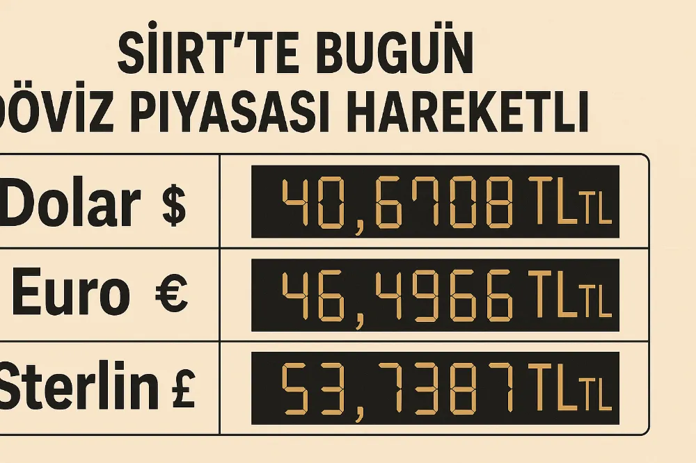 1 Ağustos 2025 Cuma günü itibarıyla Siirt’te döviz piyasasında dikkat çekici hareketlilik yaşanıyor. Sabah saatlerinde güncellenen verilere göre, dolar ve sterlin yükseliş eğilimindeyken, euroda hafif düşüş gözlemlendi.