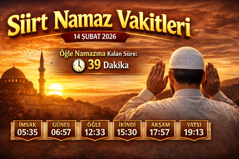 Siirt Merkez’de 14 Şubat 2026 Cumartesi gününe ait namaz vakitleri belli oldu. Günün ilk ışıklarıyla başlayan ibadet takvimi, akşam ve yatsı vakitleriyle devam edecek.