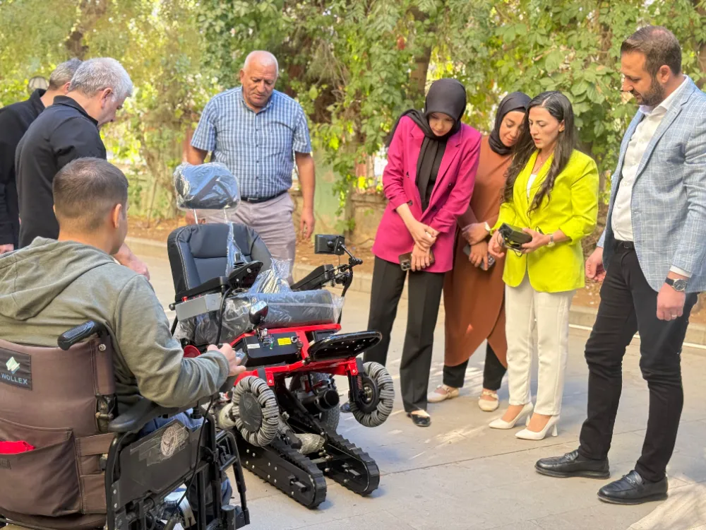 Siirt’te AK Parti İl Kadın Kolları’nın girişimleriyle 27 yaşındaki bedensel engelli Hakim Kaya’ya merdiven çıkabilen tam donanımlı tekerlekli sandalye desteği sağlandı.