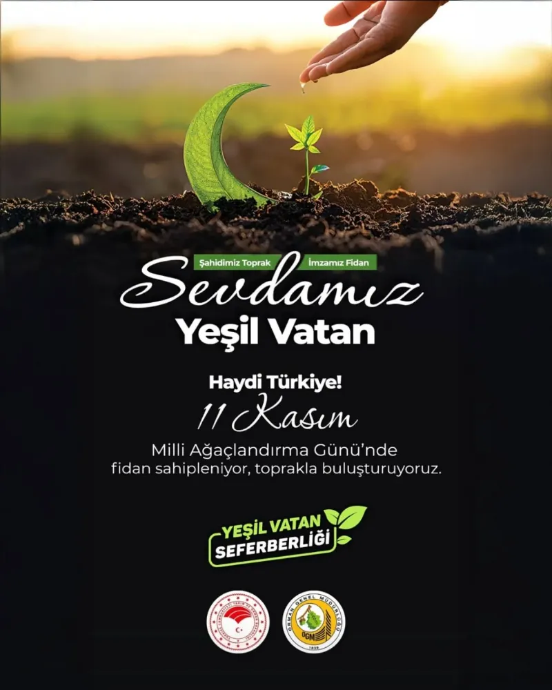 Türkiye genelinde her yıl büyük bir katılımla kutlanan 11 Kasım Millî Ağaçlandırma Günü, bu yıl da “Sevdamız Yeşil Vatan” sloganıyla gerçekleştiriliyor.