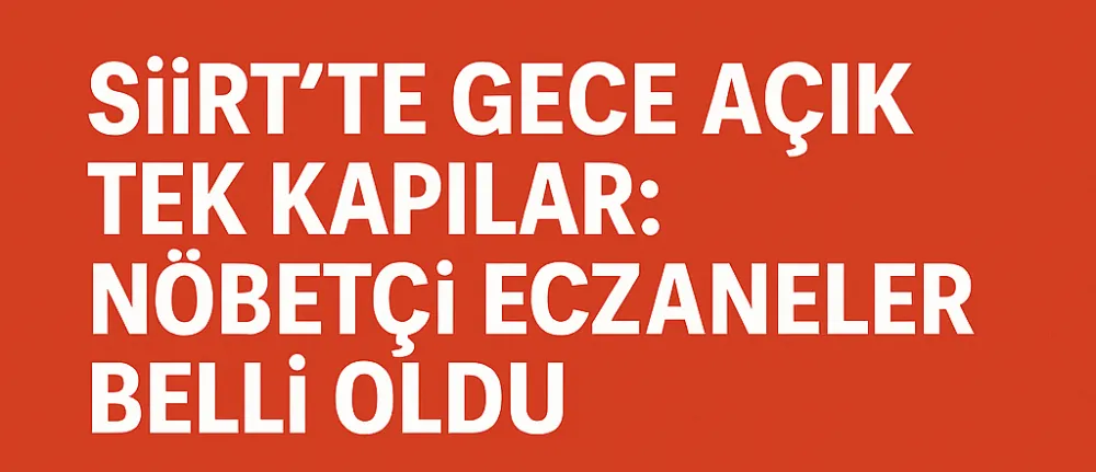 30 Temmuz Çarşamba gecesinden 31 Temmuz Perşembe sabahına kadar Siirt ve ilçelerinde nöbetçi olacak eczanelerin listesi açıklandı. Acil ilaç ihtiyacı olan vatandaşlar için hayati öneme sahip nöbetçi eczaneler gece boyunca hizmet verecek.