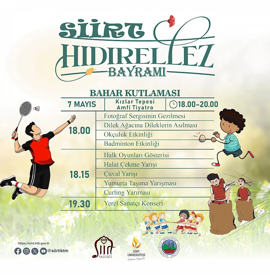Siirt Valiliği, Siirt Üniversitesi ve İl Kültür ve Turizm Müdürlüğü’nün ortak organizasyonuyla gerçekleştirilecek kutlamalarda, katılımcıları geleneksel oyunlar ve çeşitli aktiviteler bekliyor.