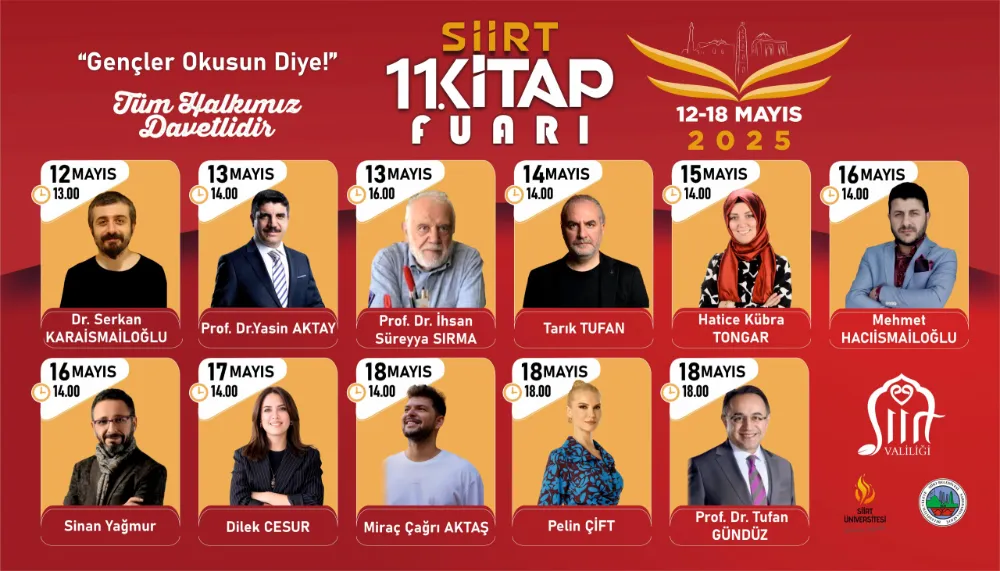11. KİTAP FUARI GENÇLER İÇİN KAPILARINI AÇIYOR! SİİRTLİLERİN HEYECANLA BEKLEDİĞİ "11. SİİRT GELENEKSEL KİTAP FUARI" 12 MAYIS’TA BAŞLIYOR! Siirt Valisi ve Belediye Başkan Vekili Dr. Kemal Kızılkaya, Cumhuriyetimizin 2. Yüzyılı ve 19 Mayıs Atatürk’ü Anma Gençlik ve Spor Bayramı ve Gençlik Haftası kutlamaları kapsamında bu yıl 12-18 Mayıs 2025 tarihleri arasında gerçekleştirilecek olan ’11.0 Siirt Kitap Fuarı’na tüm vatandaşları davet etti. Vali Kızılkaya, Güneydoğu Anadolu Bölgesi'nin en prestijli kitap fuarlarından biri olarak bilinen ve geçtiğimiz yıllarda binlerce kitapseveri ağırlayan Siirt Kitap Fuarı'nın, Valilik himayesinde Siirt Belediyesi ve İl Kültür ve Turizm Müdürlüğü'nün koordinasyonunda, 12 Mayıs Pazartesi günü kapılarını açacağını belirtti. Şehrimizin kültürel, düşünsel ve tarihi zenginliklerini yansıtan bu anlamlı etkinliğin, toplumun her kesimine hitap eden bir anlayışla gerçekleştirildiğini vurgulayan Vali Kızılkaya, “Eşsiz doğal güzelliklere sahip Siirt, zengin tarihsel birikimi ve inanç turizmiyle medeniyetlerin buluşma noktasıdır. Huzur ve kardeşlik şehri Siirt'te her yıl daha da büyüyerek, bir kültür şöleni haline gelen Siirt Kitap Fuarı'nın bu yıl onbirincisini düzenlemekten büyük mutluluk duyuyoruz” dedi. Siirt'in sosyal, kültürel ve sanatsal hayatına önemli katkılar sağlayan bu fuarın, şehrin kimliğiyle bütünleştiğini belirten Vali Kızılkaya, bu yıl fuarın "Gençler Okusun Diye” temasıyla gerçekleştirileceğini açıkladı. Ülkemizin önde gelen 100 yayınevi ve 50 yazarın katılacağı fuar, Siirt Park AVM'de düzenlenecek ve binlerce öğrenciyi kitaplarla buluşturacak. Ayrıca, öğrencilere dağıtılacak hediye çekleri ile diledikleri kitaplara ulaşma fırsatı sunulacak. Vali Kızılkaya, ilimizde bir kültür şenliği havasında gerçekleştirilecek olan 11. Siirt Kitap Fuarına tüm vatandaşları davet etti. 12 Mayıs Pazartesi günü kapılarını açacak olan Kitap Fuarı, 18 Mayıs Pazar gününe kadar, 10.00 – 22.00 saatleri arasında ziyaret edilebilecek.