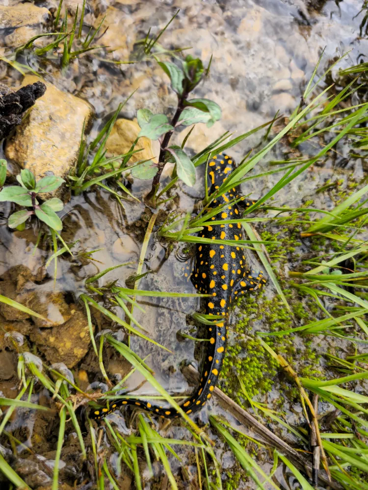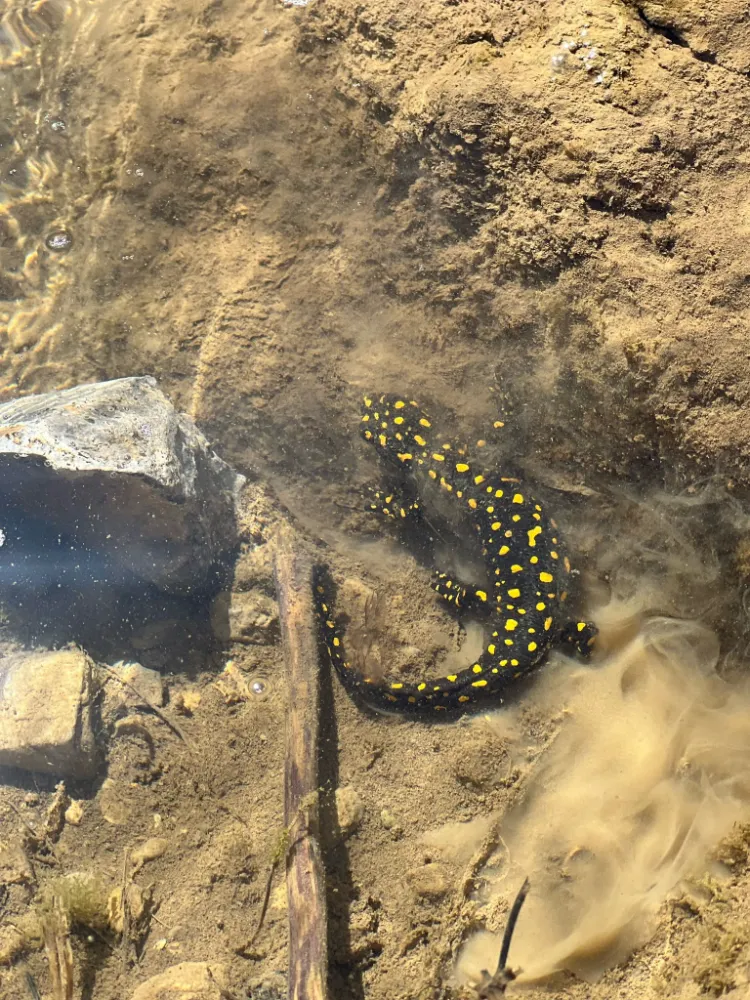 Siirt'in Şirvan ilçesinde nesli tehdit altındaki, 'lekeli semender' olarak bilinen sarı benekli semender görüldü.