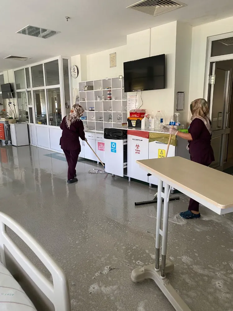 gibi hastanelerin tüm birimlerinde detaylı temizlik ve dezenfeksiyon uygulamaları yürütülüyor.
