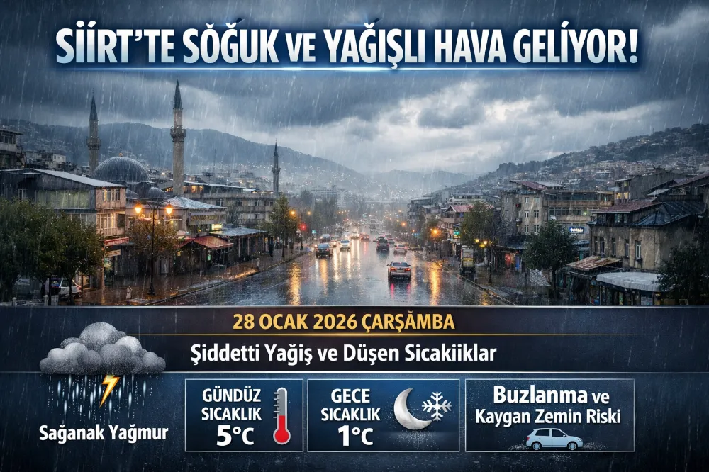 Siirt’te kış şartlarının önümüzdeki günlerde de etkisini sürdürmesi beklenirken, hava sıcaklıklarının mevsim normallerinin altında seyretmesi öngörülüyor. Yağışlı hava, tarım ve günlük yaşam üzerinde etkili olurken, yetkililer olası olumsuzluklara karşı dikkatli olunması çağrısında bulunuyor.