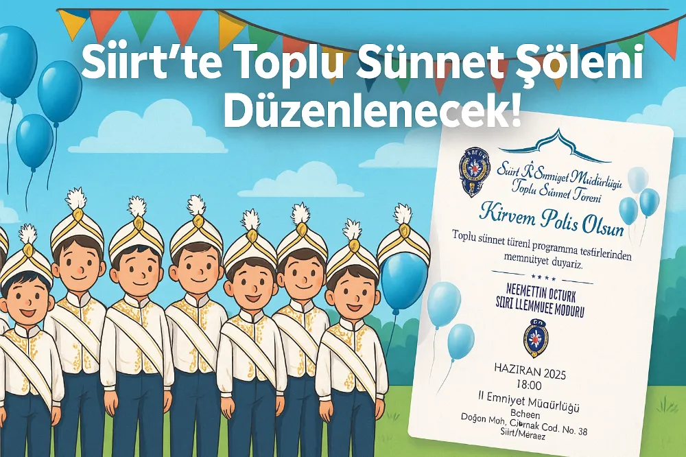 Siirt'te uzun bir aradan sonra anlamlı bir organizasyonla çocukların yüzü gülecek. Siirt İl Emniyet Müdürlüğü öncülüğünde düzenlenecek Toplu Sünnet Şöleni, hem sosyal dayanışmayı hem de çocuklara unutulmaz bir günü bir arada yaşatmayı amaçlıyor.