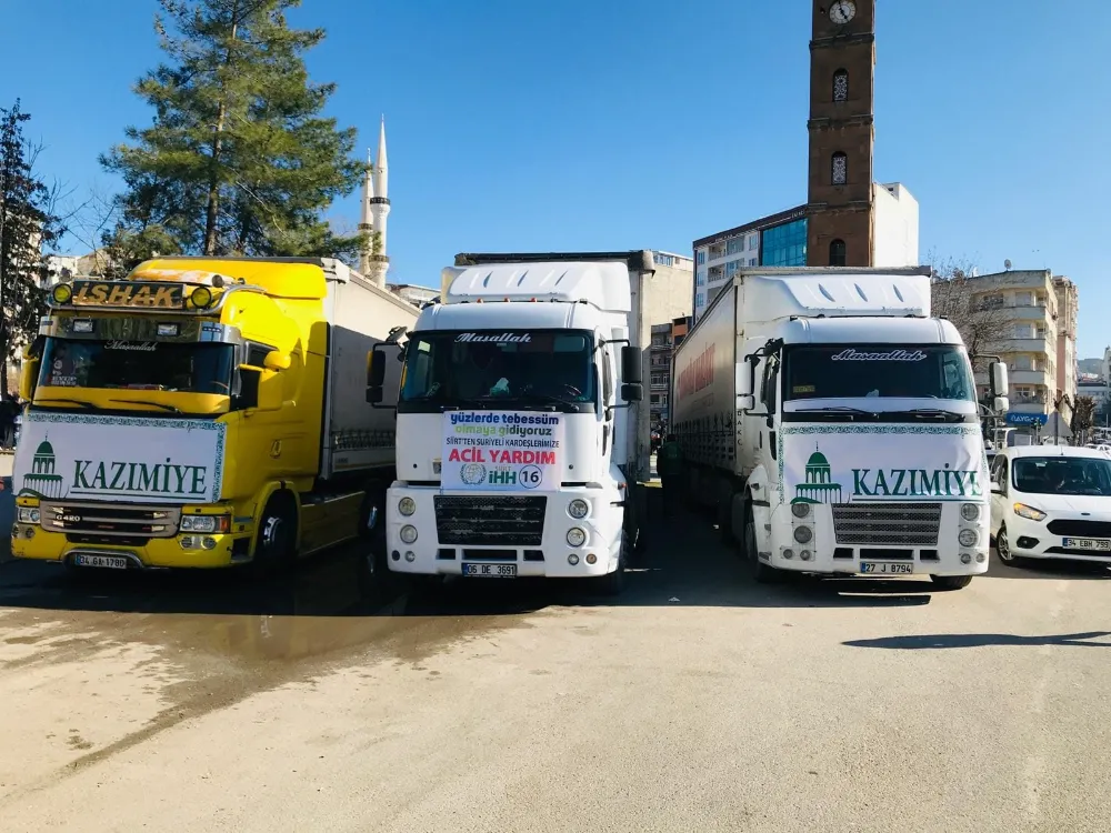 Yardım tırlarından biri tamamen 500 ml’lik su şişeleriyle, diğer ikisi ise un, bakliyat ve giyim malzemeleriyle doluydu. Yardım organizasyonuna Siirt Milletvekili Mervan Gül, AK Parti İl Başkanı Av. Bahri Caner Özturan, STK temsilcileri ve vatandaşlar katıldı.