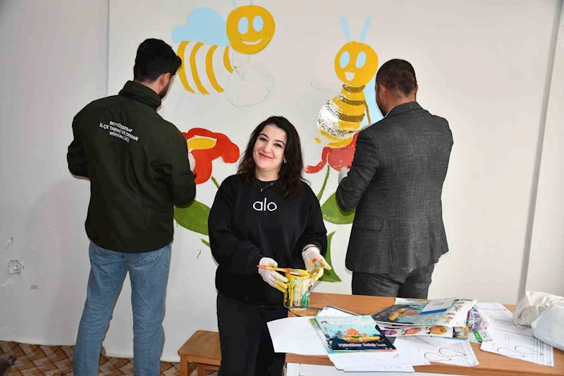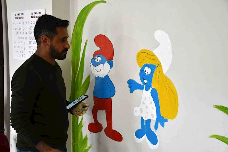 Şırnak’ın Beytüşşebap ilçesinde "Sınıflarımız Can Buluyor Projesi" kapsamında bir araya gelen gönüllüler, öğrenciler için okul duvarlarını tuvale çevirerek çizdikleri resimlerle süsledi.