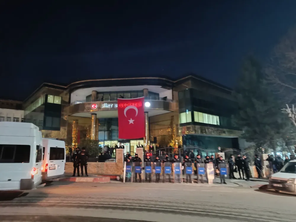 İçişleri Bakanlığınca, Siirt Belediye Başkanı Sofya Alağaş''ı görevden alınmasının ardından yerine kayyum atanması bekleniyor,Siirt belediyesi önünde hareketlilik devam ediyor,