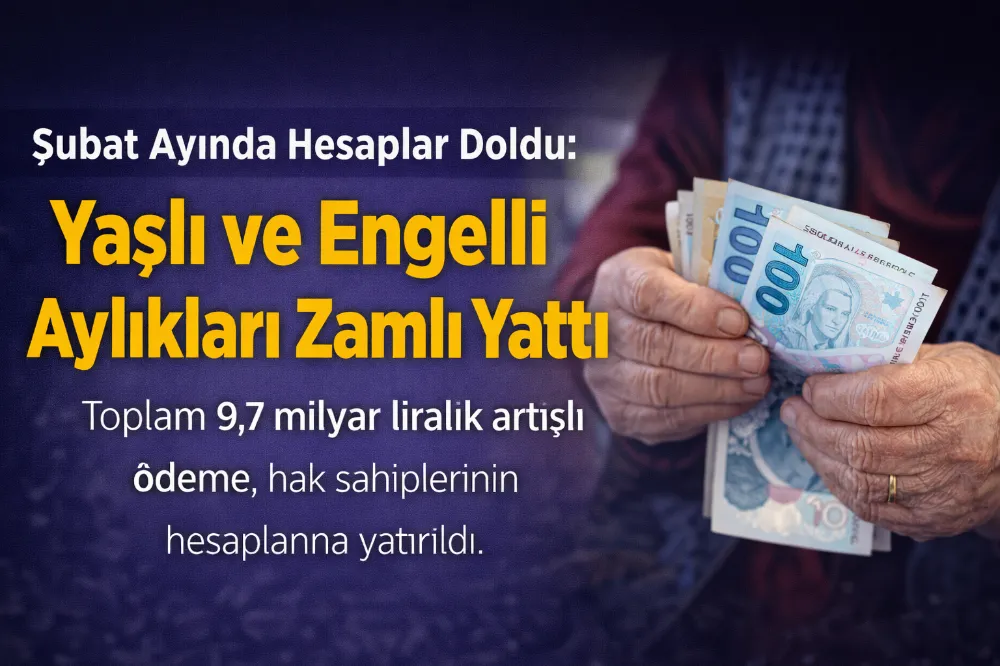 Şubat ayına ilişkin yaşlı ve engelli aylıkları, yapılan artışın ardından zamlı olarak hak sahiplerinin hesaplarına aktarılmaya başlandı. Memur maaş katsayısındaki güncellemenin sosyal desteklere yansıtılmasıyla birlikte, ülke genelinde toplam 9,7 milyar liralık ödeme gerçekleştirildi.