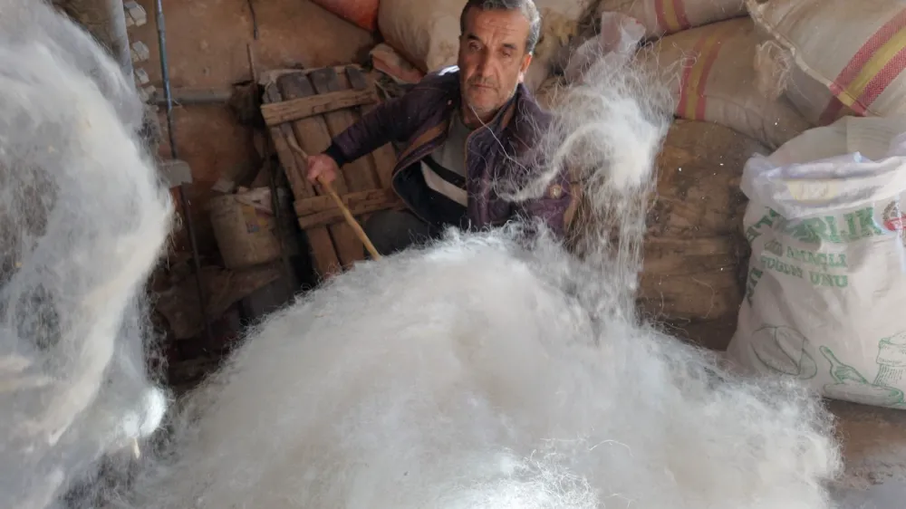 Abdullah Aydın, 1995'te başladığı yün işlemesini 30 yıldır sürdürüyor. 7 yıl ustasının yanında çalıştıktan sonra ayrılan Aydın, tiftik atölyesini yün atölyesine çevirerek vatandaşların getirdiği yünleri açıp yastık, minder ve yorganda kullanılacak duruma getiriyor. Abdullah Aydın, 1995'ten beri bu işi yaptığını, yün atölyesinin önceden tiftik atölyesi olduğunu söyledi. Ustasının yanında 7 yıl çalıştığını belirten Aydın, "Bu işi öğrendim. Şimdi kendim yapıyorum. Tiftik atölyesini yün makinesine çevirdim. Siirt halkına yastık, minder, döşek ve yorgan yünü açıyorum. Ailem beni buraya gönderdi, çalışmaya buradan başladım. İş gelse günde bin lira, yüz lira kazanırım. Bazen de siftah bile yok. Kilosunu 40 liradan çekiyorum. Benden başka kimse yok, Siirt'te bir tek ben varım" dedi.